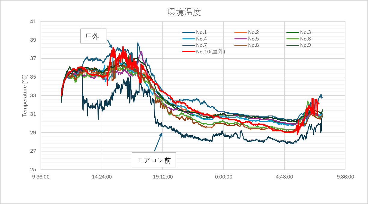 ・夜間でもWBGTで27〜28℃、気温は30℃前後で推移している